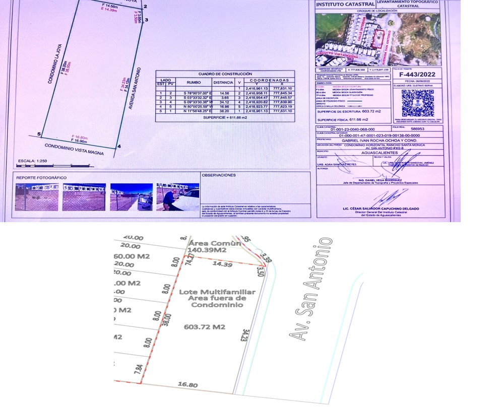 Descripción de la propiedad: 🔖Excelente Terreno comercial y habitacional en 📍Rancho Santa Mónica 👉Superficie de terreno 603.72 ✅Colindante al condominio la Joya,Vista Magna y al nuevo próximo parque de Rancho Santa Monica. ✅Predio plano tipo ortogonal ✅Papeles en órden y al corriente de impuestos. Precio de Terreno 💲 5,800,000.00, Precio por m2 💲9,809.37 INCLUYE EN ESTE PRECIO PAGOS DE DERECHOS POR CONEXIÓN POR SANEAMIENTO, DERECHOS DE EXTRACCION DE AGUA Y POR CONEXIÓN DE AGUA DE 8 VIVIENDAS POR UN TOTAL DE $153,905.00. Contáctanos para que lo conozcas. 📱449 602 6172,📱449 306 33 18.