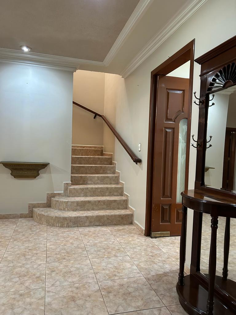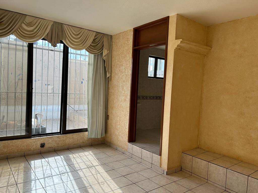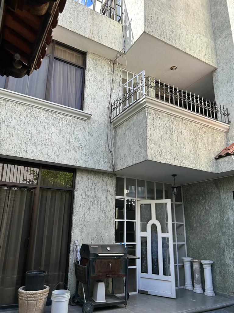 Descripción de la propiedad: Hermosa casa al norte a dos cuadras de la Universidad Autónoma de Aguascalientes, en excelente estado de conservación de 2 plantas, la planta baja consta de; cochera 3 autos, estudio, oficina, sala, comedor, 1/2 baño, cocina equipada , patio, habitación con baño completo, la planta alta consta de : 1 recámara principal con baño completo, jacuzzi, vestidor, otras 3 habitaciones con baño completo, sala con librero, 3a planta consta de: habitación multiusos con baño completo, cuarto de lavado, terraza.