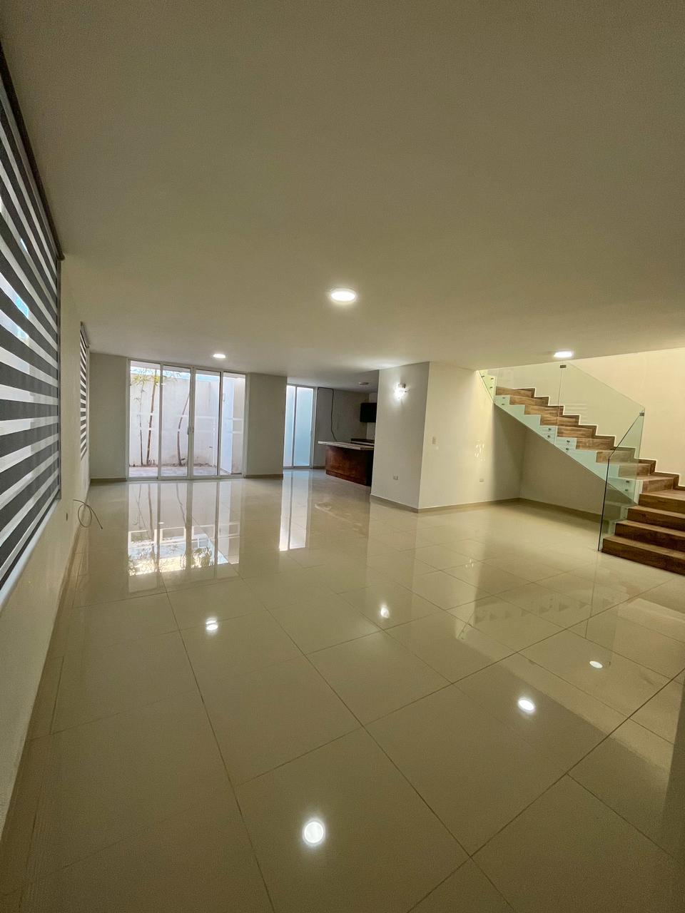 Descripción de la propiedad: Hermosa casa en renta Loretta II, Planta baja: Cochera techada dos autos, Sala comedor muy amplios, medio baño, cocina de concepto abierto con isla y alacena, área de lavado techada, patio terraza con pasillo de entrada hacia la calle, Planta alta: área de TV, dos recámaras con closet, recámara principal con vestidor y baño completo y lindo balcón. Area social con alberca, gimnasio, área de terraza equipada, zona infantil. Entrada controlada con vigilancia 24/7