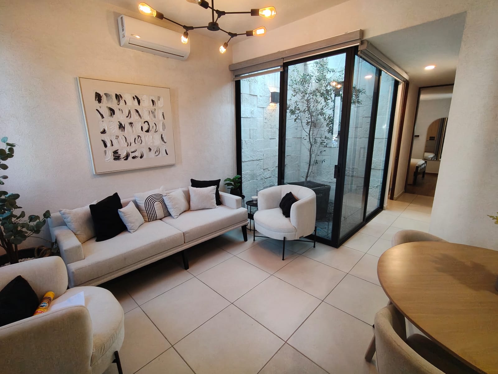 Descripción de la propiedad: Todo lo que necesitas en una sola planta. Sala comedor, cocina, recámara principal con baño completo, 1 recámara secundaria y baño completo, cubo de luz central, cochera para 1 auto, área de servicio integrada, cisterna de 5000 lts, boiler de paso y preparación para aire acondicionado. Ideal para parejas, familias jóvenes o para vivir a largo plazo con máxima practicidad. con recámaras confortables,en un desarrollo con +40 amenidades, Doble casa club, alberca, salón de usos múltiples, área infantil, área de lectura y trabajo. Precios, modelos y promociones sujetos a disponibilidad.